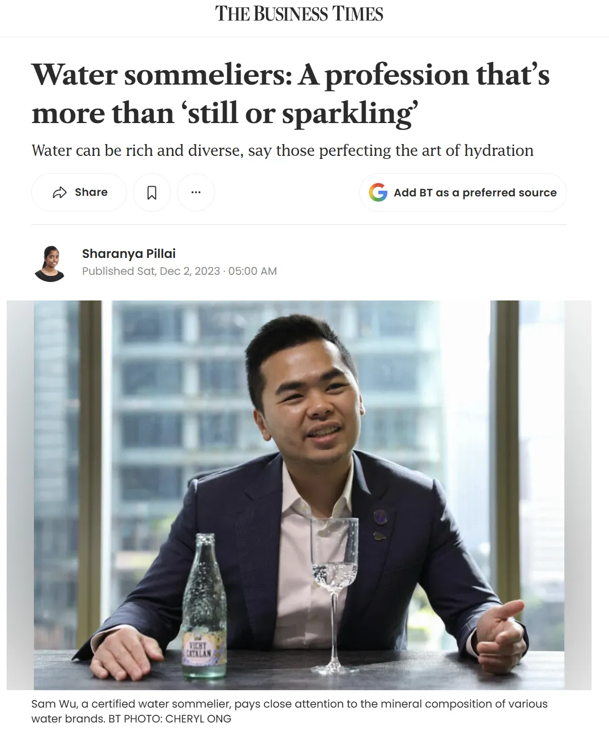 The Business Times: Water sommeliers: A profession that’s more than ‘still or sparkling’